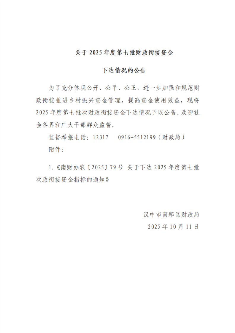 南财办农〔2025〕79号--关于下达2025年度第七批次财政衔接资金指标的通知