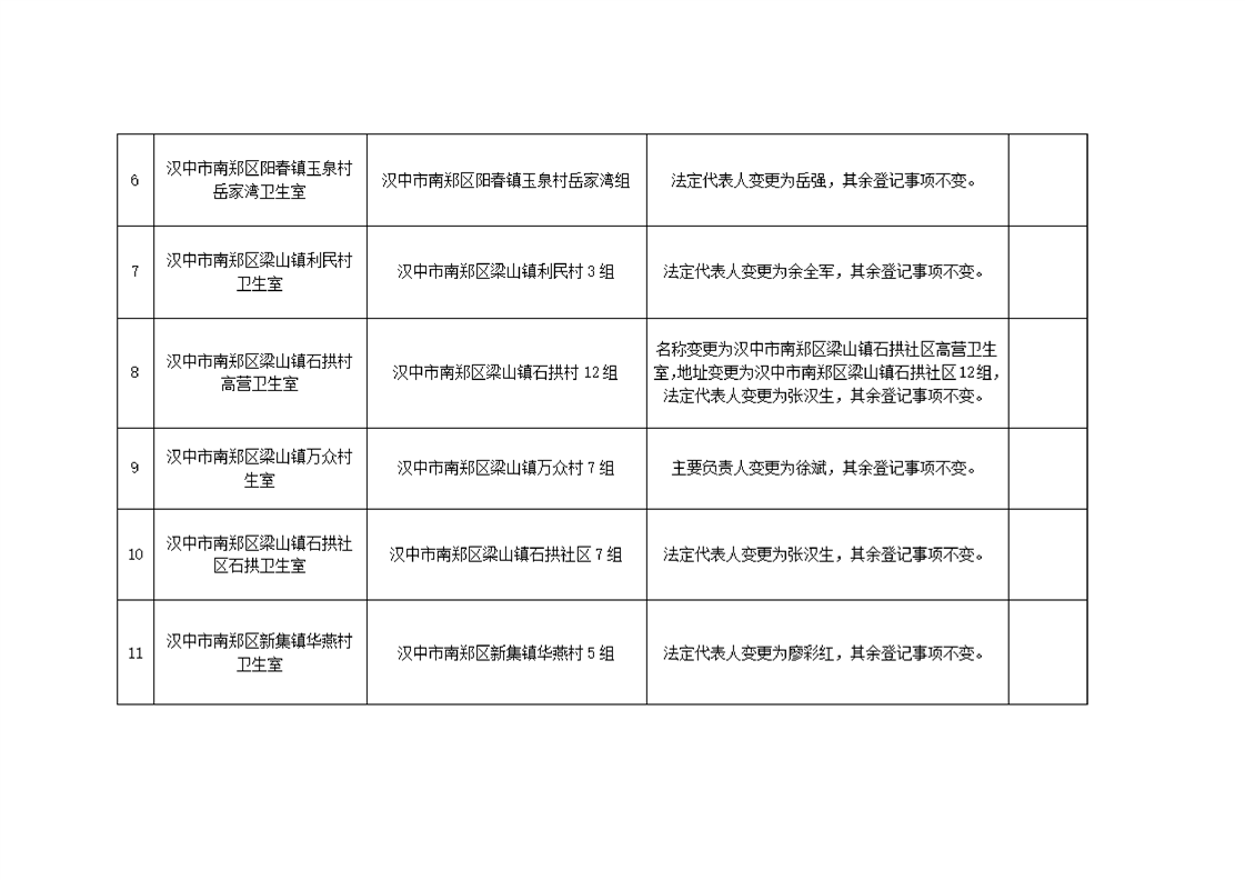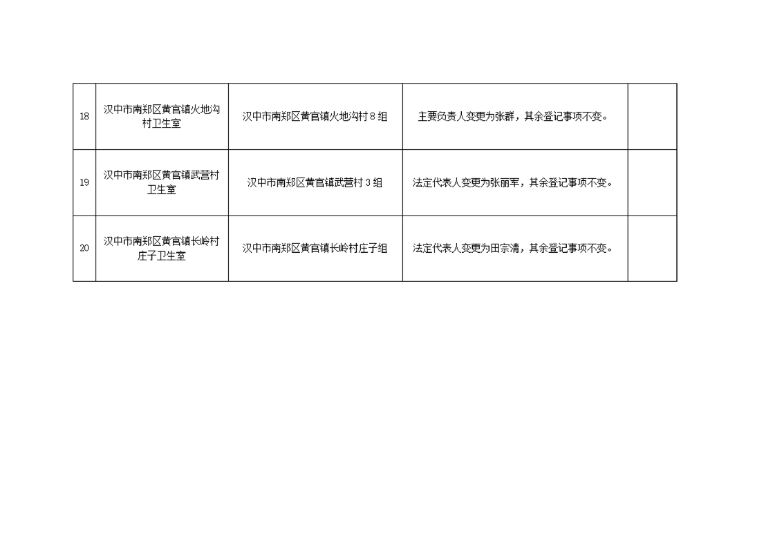 汉中市南郑区行政审批服务局关于汉中市南郑区协税镇黄家沟村卫生室等医疗机构变更登记有关事项的公示