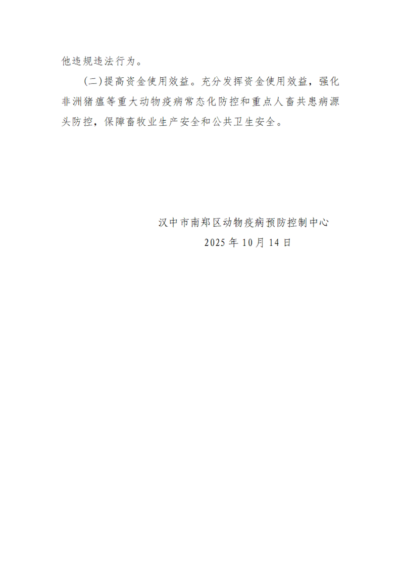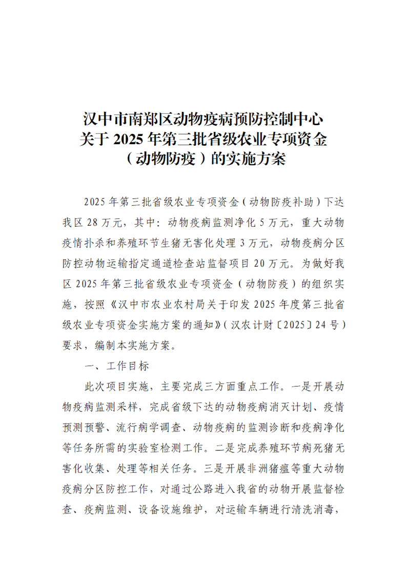 汉中市南郑区动物疫病预防控制中心关于2025年第三批省级农业专项资金(动物防疫)的实施方案