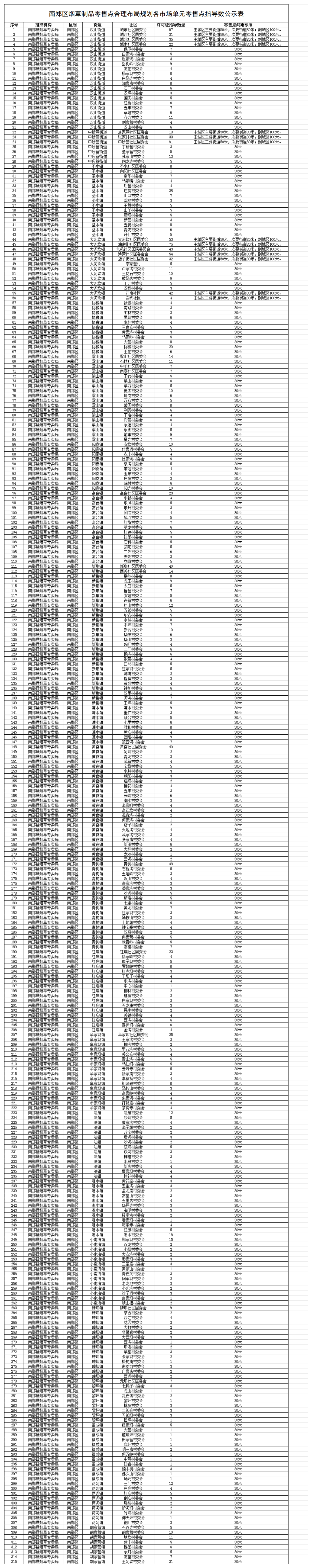 南郑区烟草制品零售点合理布局规划各市场单元零售点指导数公示表