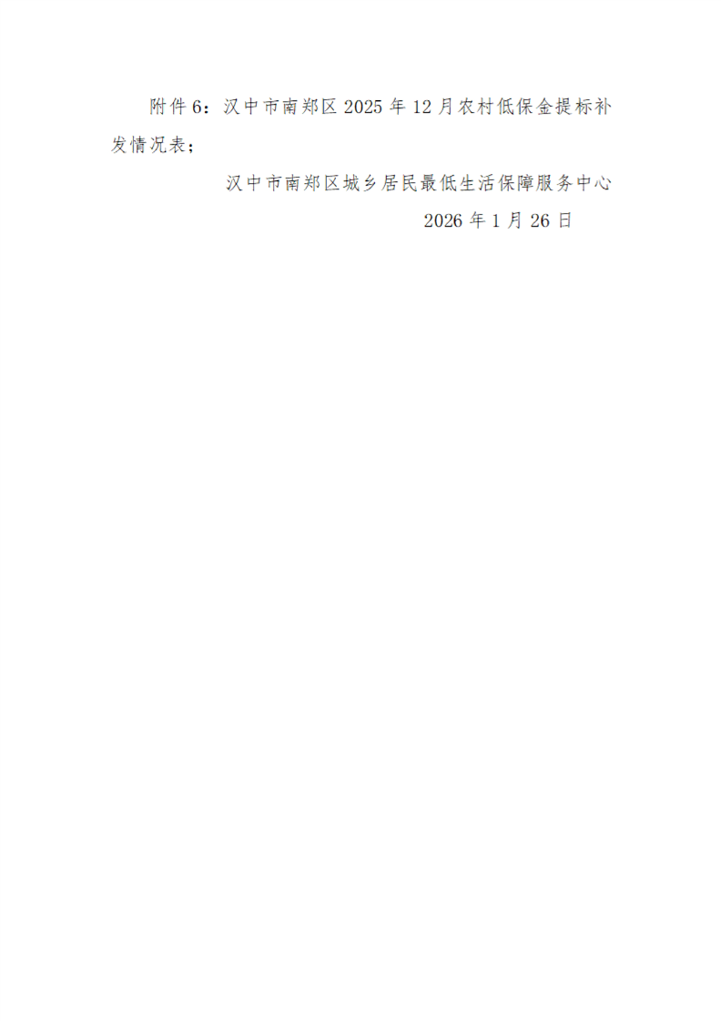 附件6:汉中市南郑区2025年12月农村低保金提标补发情况表