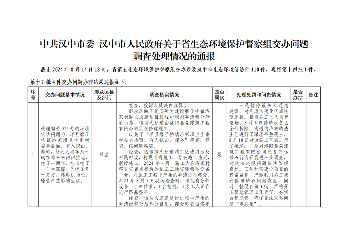 中共汉中市委 汉中市人民政府关于省生态环境保护督察组交办问题调查处理情况的通报