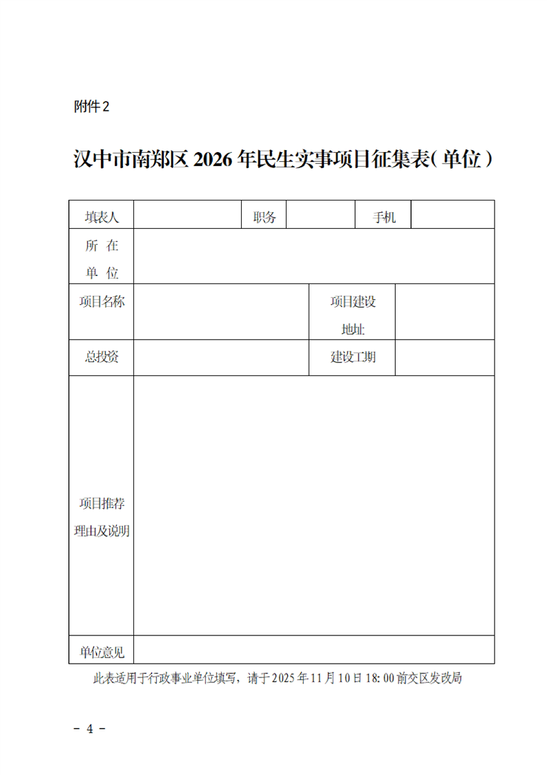 汉中市南郑区人民政府关于公开征集2026年民生实事项目的通告