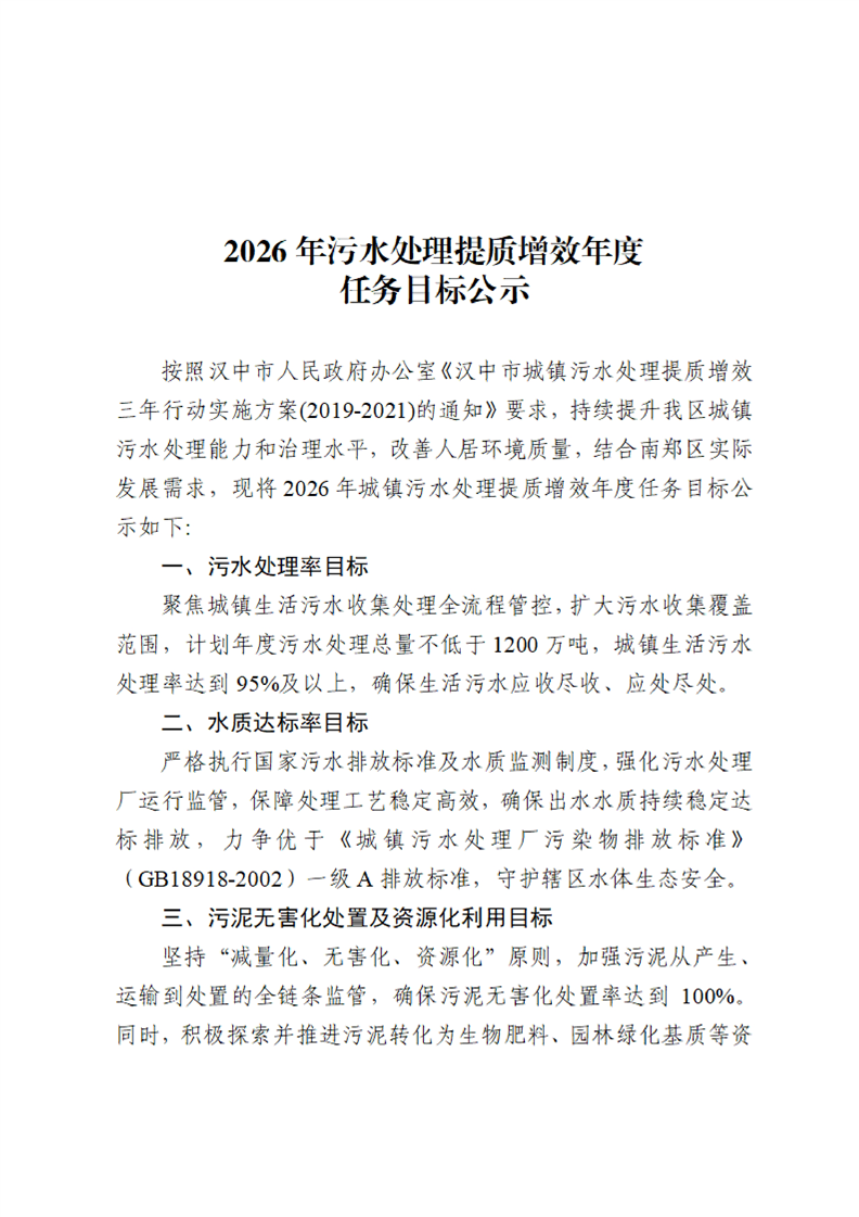 2026年污水处理提质增效年度任务目标公示